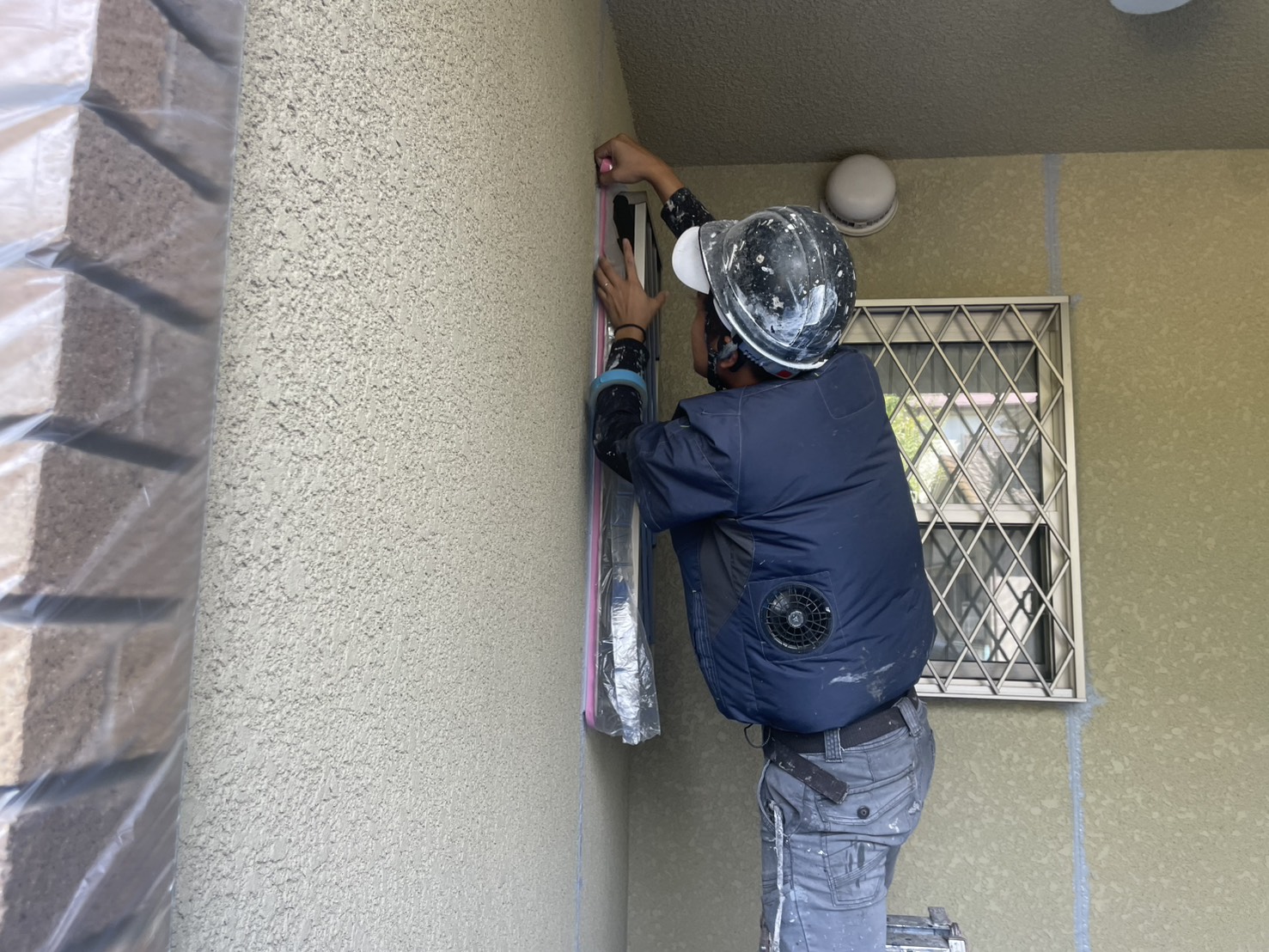 窓のビニール養生をしています👷🏻♂️👍🏻⭕️窓など汚れてはいけない床などを全てキッチリ養生します‼️🏠