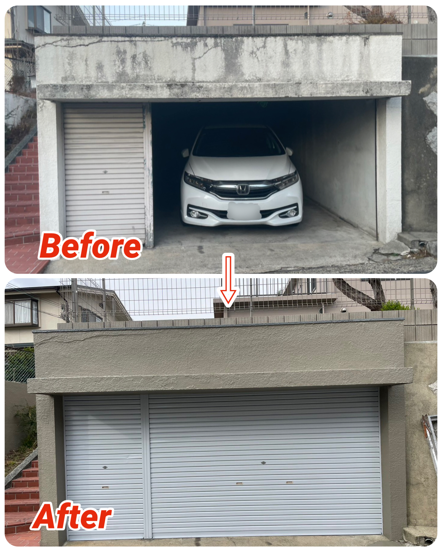 高槻市 K様邸《施工内容》車庫まわり外壁塗装、車庫上ウレタン防水、シャッター塗装、一部雨樋交換等🏠車庫の内側に雨漏りしているとの事で、お問い合わせ頂きました!車庫の上の側面が土で覆われており、部分的に土を掘って、補修してからの施工させて頂きました😌✨経年劣化が進んでおり、凄く、綺麗に生まれ変わりました💯‼️この度は、ありがとうございました🙇🏻♂️🌈